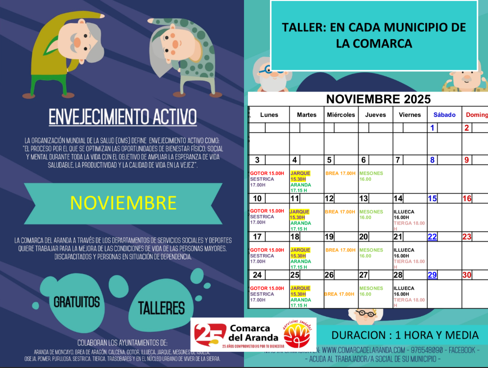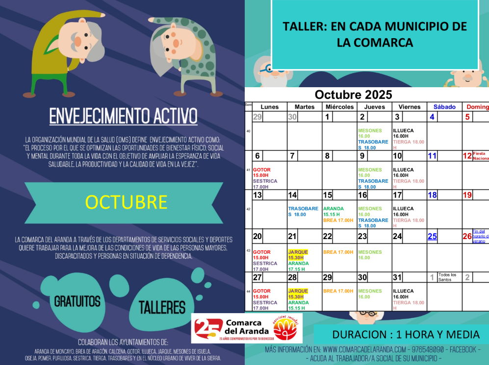 Aqui está todo lo que necesitas saber sobre el horario de cada actividad de Envejecimiento Activo en cada municipio.