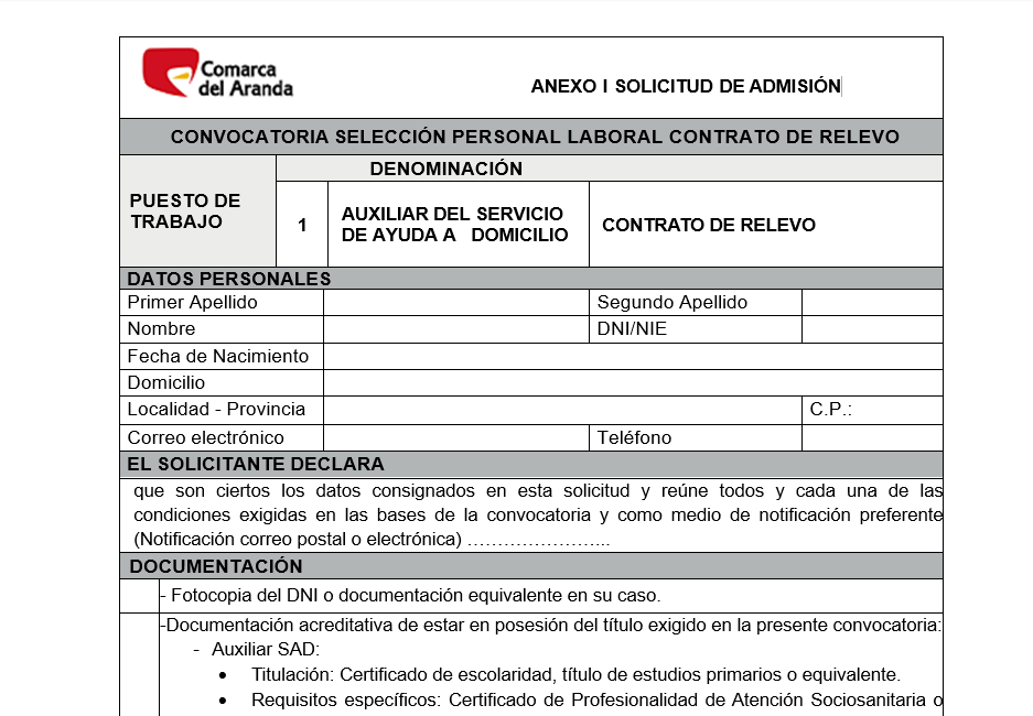 Se ha abierto el plazo para el proceso selectivo de una plaza de Auxiliar de SAD.